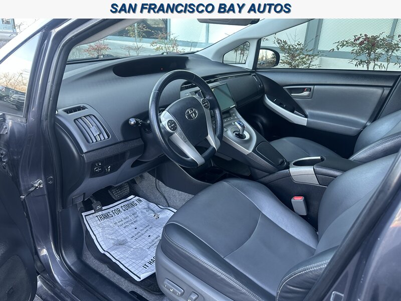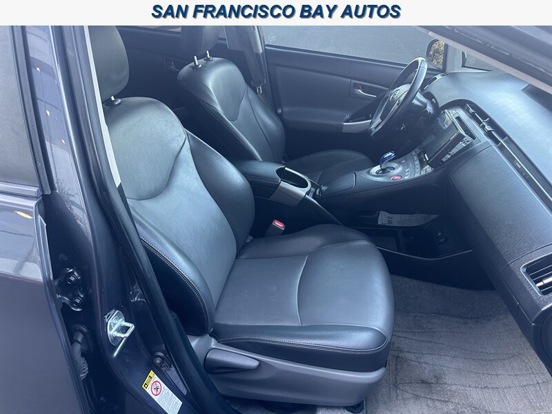 Step inside to a Dark Gray leather interior that elevates comfort and longevity. The leather surfaces are comfortable, easy to maintain, and give the cabin a premium feel. The Prius Four’s cabin is designed around usability and efficiency: ergonomically placed controls, a driver-centric instrument cluster, and excellent outward visibility.